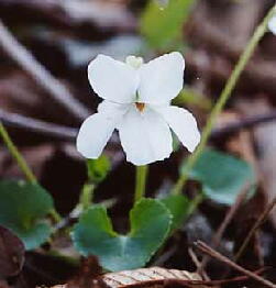 タチツボスミレの紫花の中に咲く純白の花はとても清楚な感じがします。