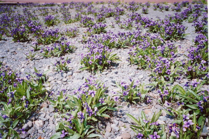 小諸市南部の公民館の庭に咲いていたスミレの群落です。
