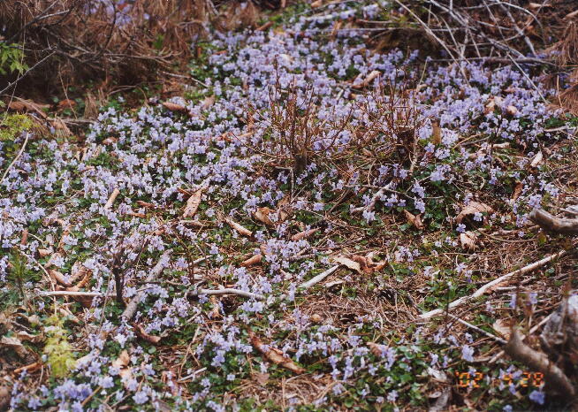 塩山市の道路脇の造林地に1,000u位に足の踏み場もなく咲いていたタチツボスミレです。
