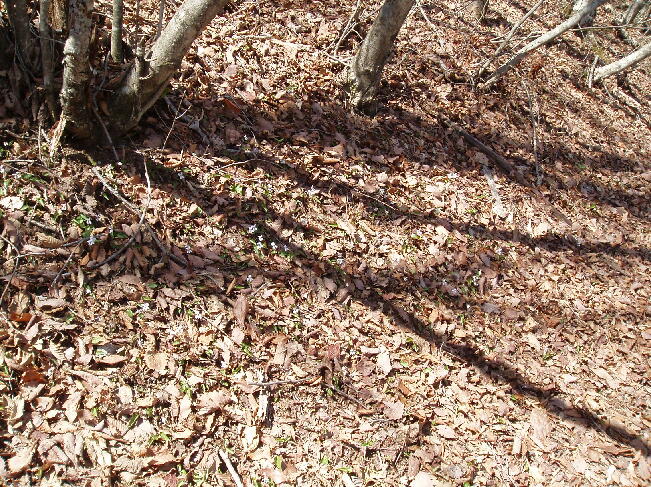 松姫峠の登山道沿線のナガバノスミレサイシンの群落です。
