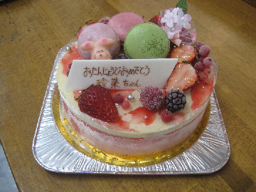 この写真は18センチでフルーツを多めのに飾っています。